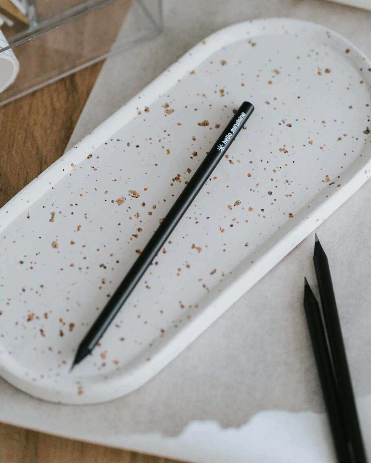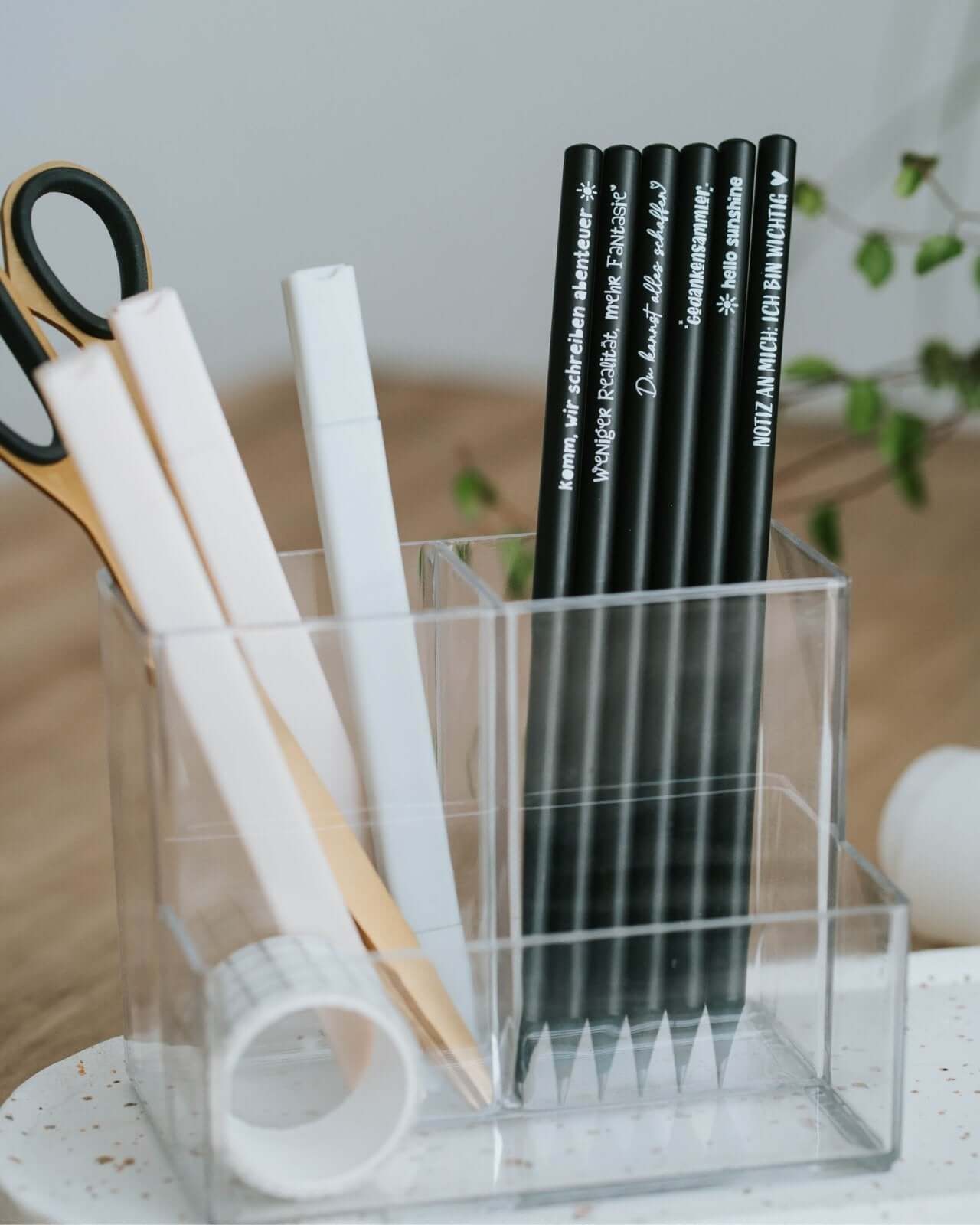 Ob du den Tag planst, Gedanken sammelst oder kreative Ideen festhältst – der Bleistift „Hello Sunshine“ bringt positive Energie aufs Papier. Mit mattschwarzer Oberfläche, angenehmer Rundform und hochwertiger HB-Mine verbindet er Design und Motivation auf die schönste Art. Oft verschenkt an Freundinnen, Kolleginnen oder an sich selbst – als freundlicher Reminder: Du schaffst das. Und heute wird ein guter Tag.