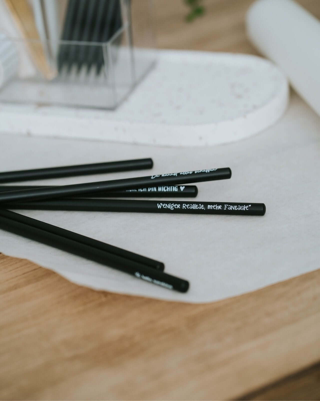 Ob kreative Notizen, flüchtige Ideen oder leise Gedanken zwischen den Zeilen – der „Weniger Realität, mehr Fantasie“-Bleistift ist wie ein kleines Ticket raus aus dem Alltag. Mit mattschwarzem Design, angenehmer Haptik und weicher HB-Mine wird er schnell zum liebsten Schreibbegleiter für alle, die mit Kopf und Herz fantasieren. Oft verschenkt als inspirierendes Mitbringsel für Freundinnen, Kolleginnen oder kreative Lieblingsmenschen.