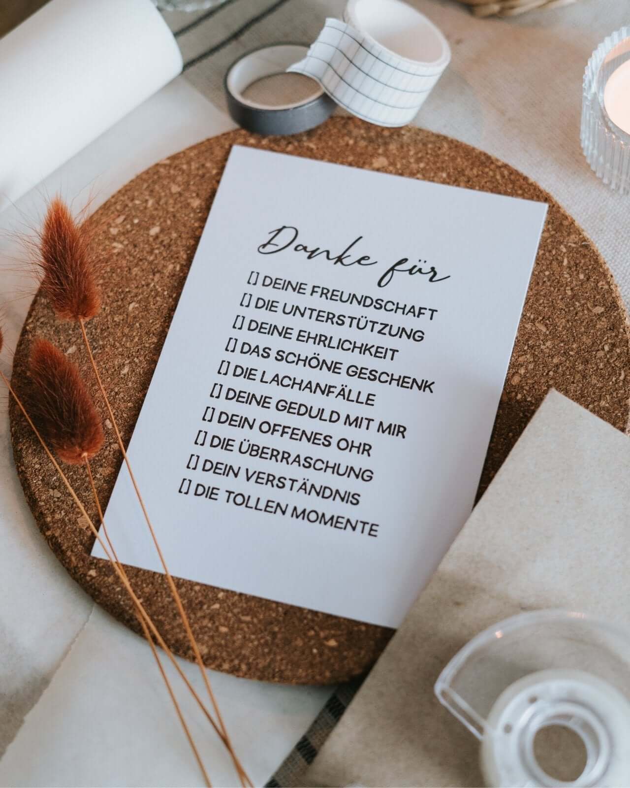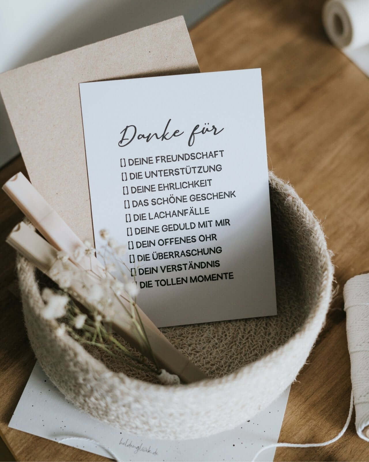 Postkarte „Danke für…“ – Dein persönliches Dankeschön mit Herz