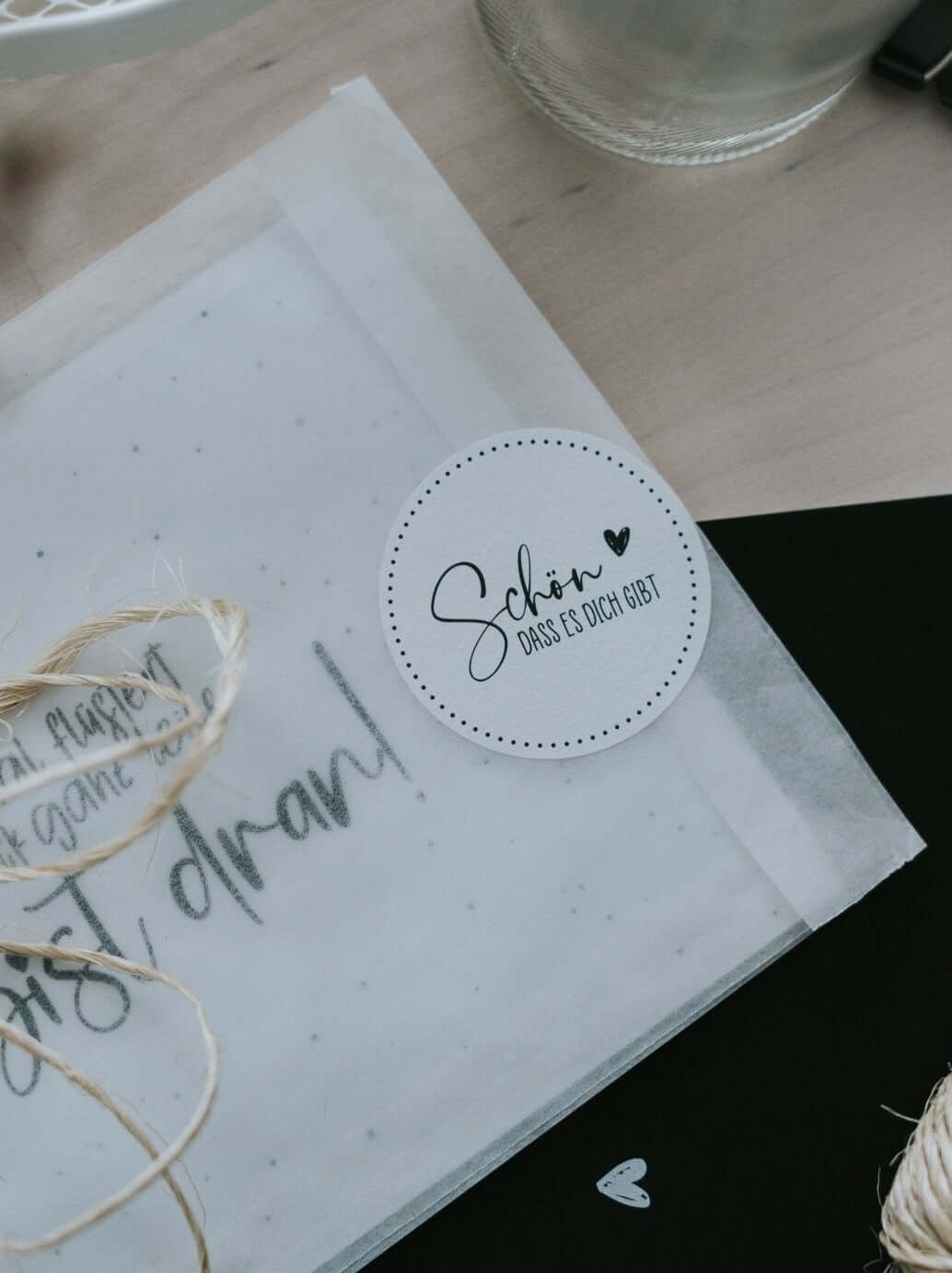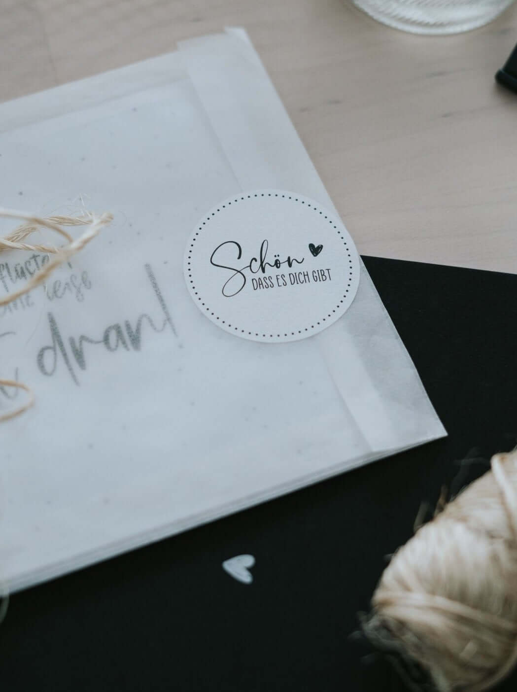 Mit 4 cm Durchmesser, zeitlosem Weiß und hochwertiger Verarbeitung ist dieser Aufkleber perfekt für Geschenkverpackungen, Briefe, Blumensträuße oder kleine Mitbringsel. Ob zum Geburtstag, als Alltagsgruß oder einfach so – dieser Sticker sagt, was wirklich zählt: Schön, dass es dich gibt.