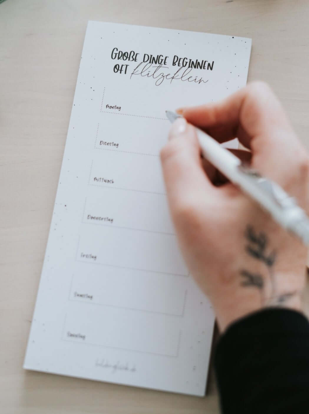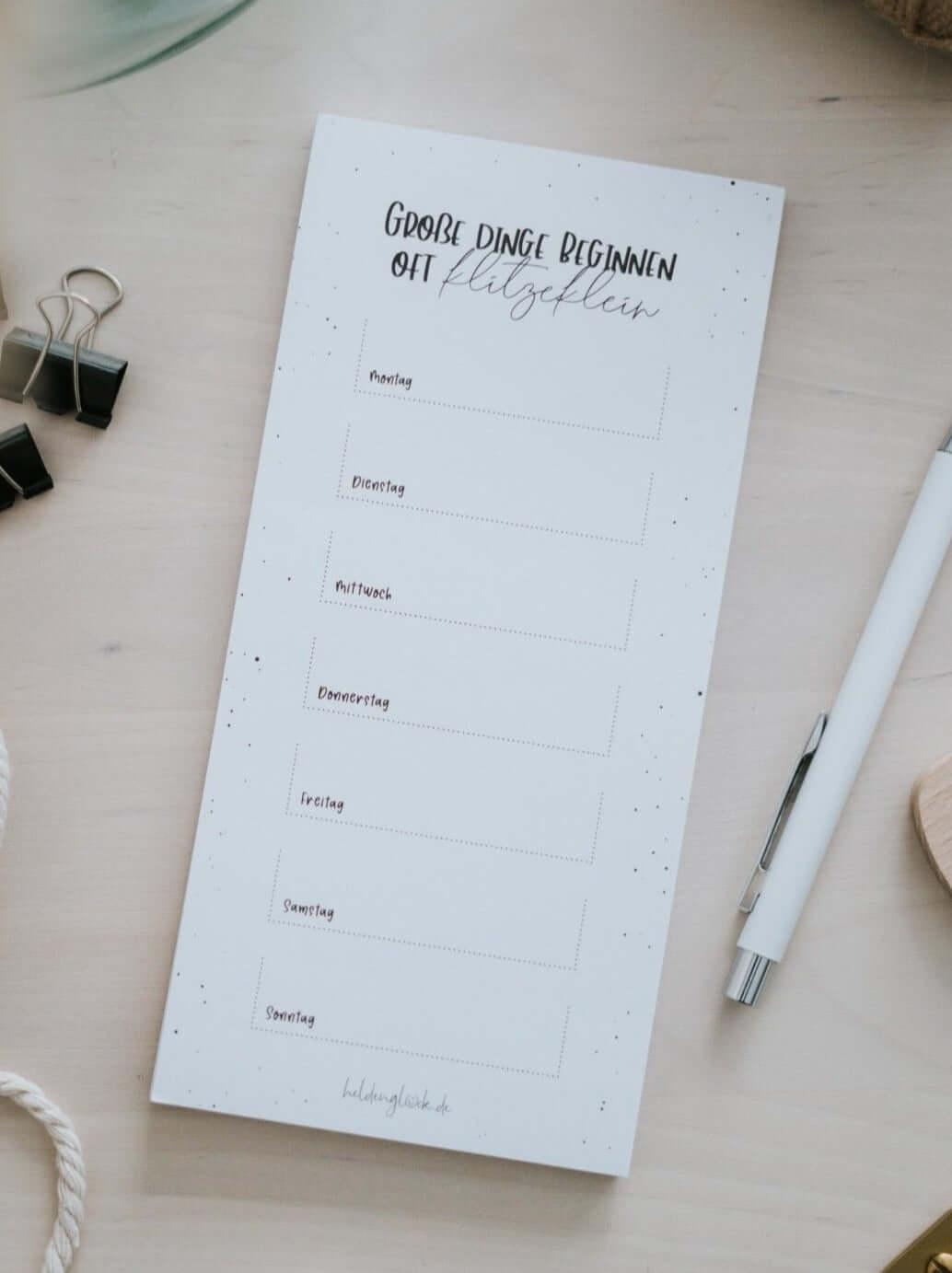 Ein praktischer Alltagshelfer, der kleine Schritte sichtbar macht – nachhaltig produziert und bewusst gestaltet. Besonders schön als Geschenk für alle, die mit Herz, Verstand und einem guten Plan durch den Tag gehen. Perfekt kombinierbar mit einem unserer Bleistifte oder Notizbücher für ein durchdachtes Set.