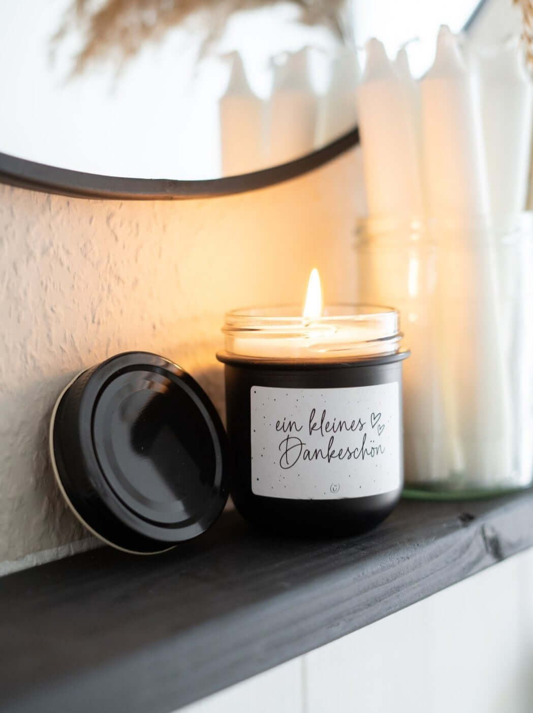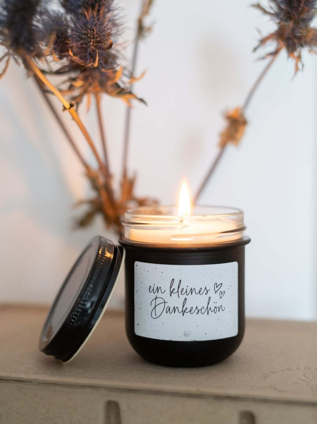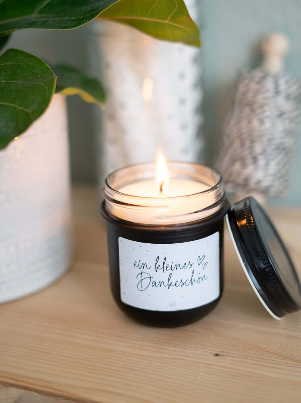 Stell dir vor, du willst einfach mal Danke sagen – ehrlich, persönlich und mit Bedeutung. Diese vegane Kerze im Glas ist genau dafür gemacht. Sie trägt den liebevollen Spruch „ein kleines Dankeschön“ und wird mit viel Hingabe in einer Inklusionswerkstatt handgegossen. Ob für Kolleg:innen, Freund:innen, Lehrer:innen oder als kleine Aufmerksamkeit zwischendurch: Viele Heldenglück-Kund:innen verschenken diese Kerze, wenn sie zeigen möchten, wie viel ihnen jemand bedeutet. Sie bringt Wärme und Wertschätzung – ganz ohne große Worte.