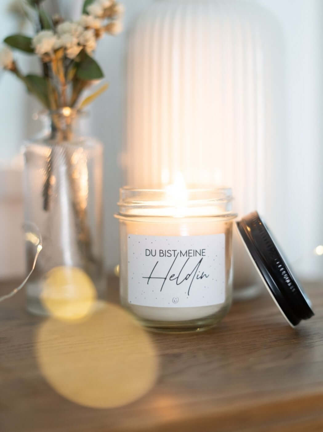 Vegane Kerze im Glas – „Du bist meine Heldin“