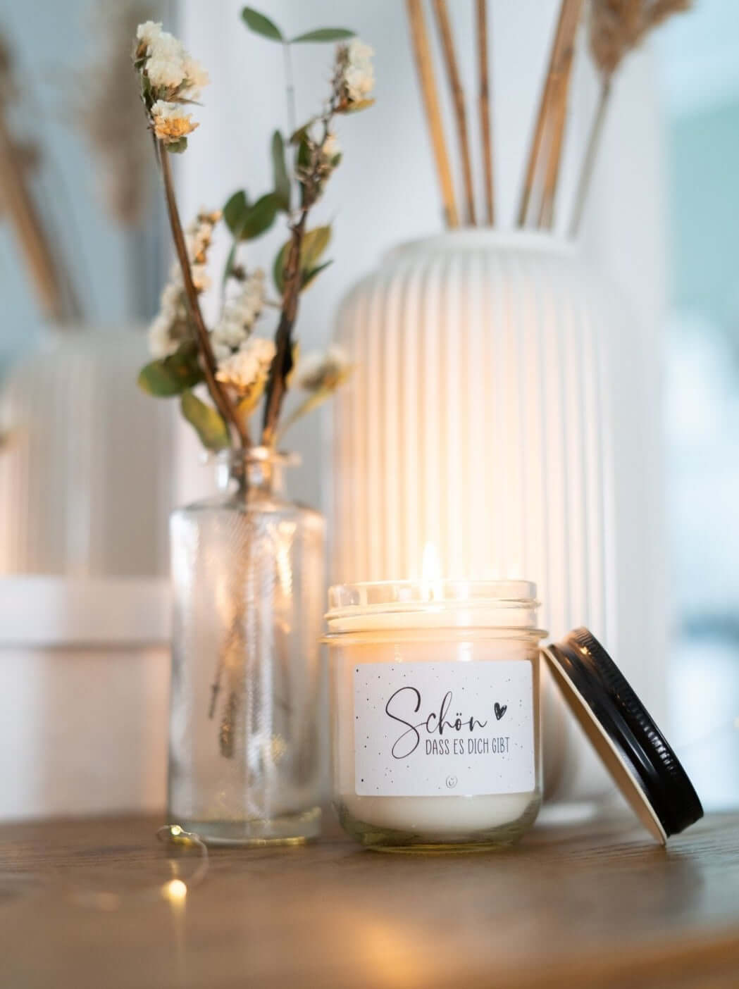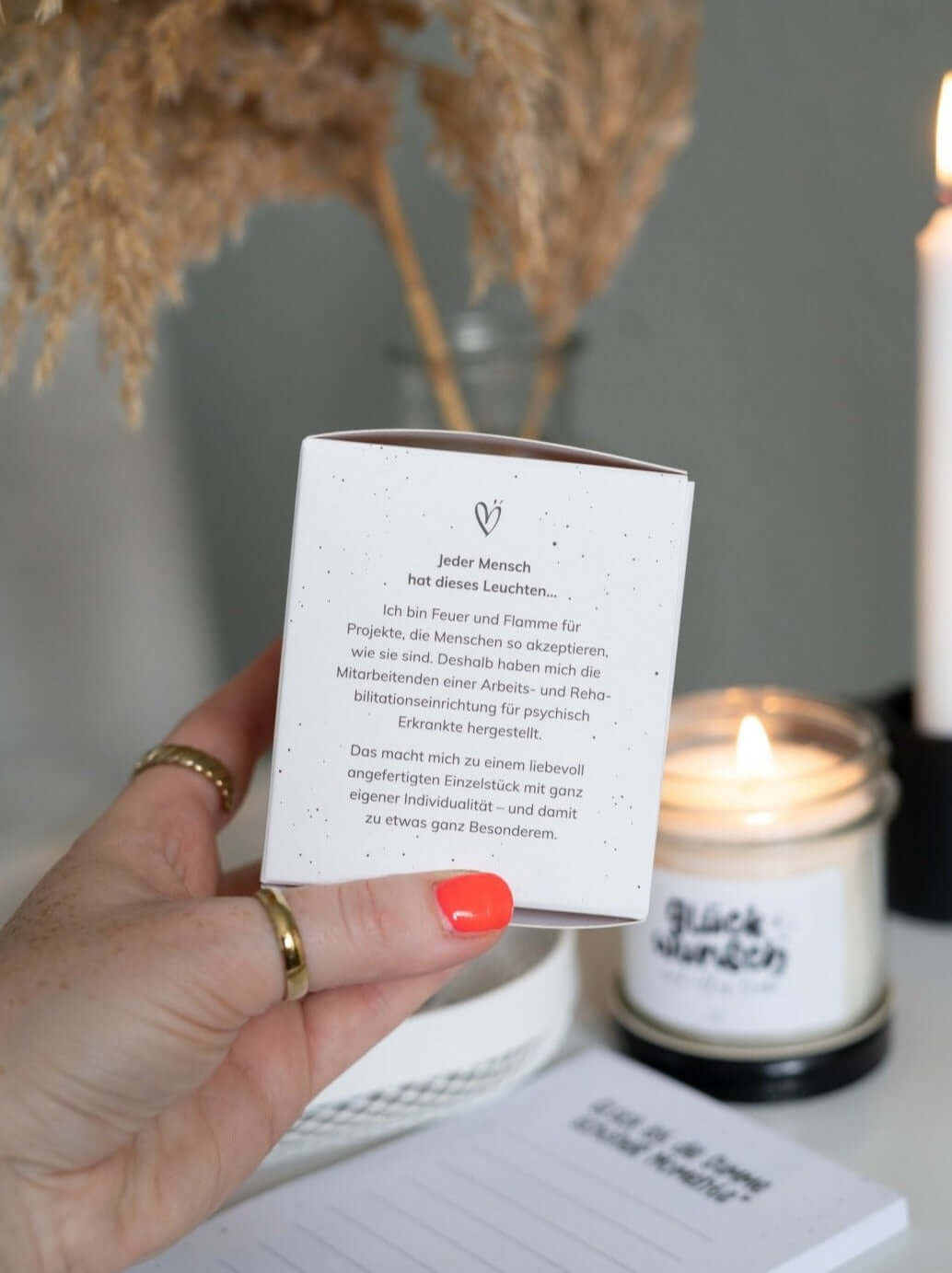 Du suchst ein Geschenk, das nicht laut ist, sondern leise ins Herz trifft? Die vegane Kerze im Glas trägt die liebevolle Botschaft: „Schön, dass es dich gibt.“ Handgegossen in einer deutschen Inklusionswerkstatt, steht sie für Achtsamkeit, Verbundenheit und ehrliche Wertschätzung. Viele Heldenglück-Kund:innen verschenken sie an Menschen, die im Alltag oft zu wenig „Danke“ hören – an Freund:innen, Kolleg:innen, Partner:innen oder Familienmitglieder. Diese Kerze bringt Licht, wo es gebraucht wird – und berührt, ohne große Worte zu machen.