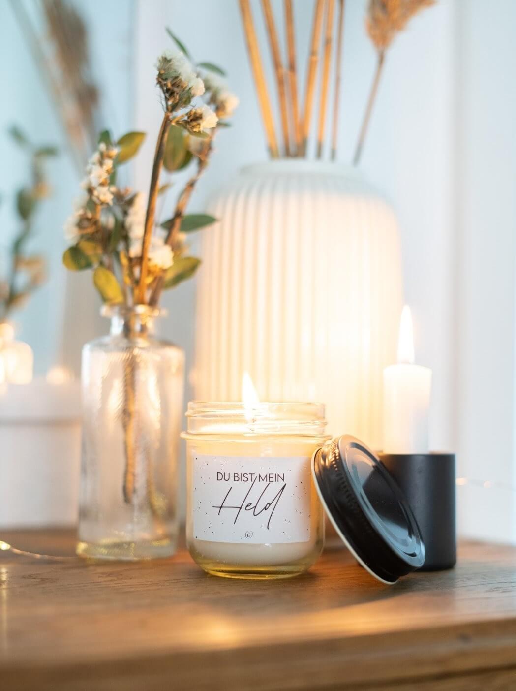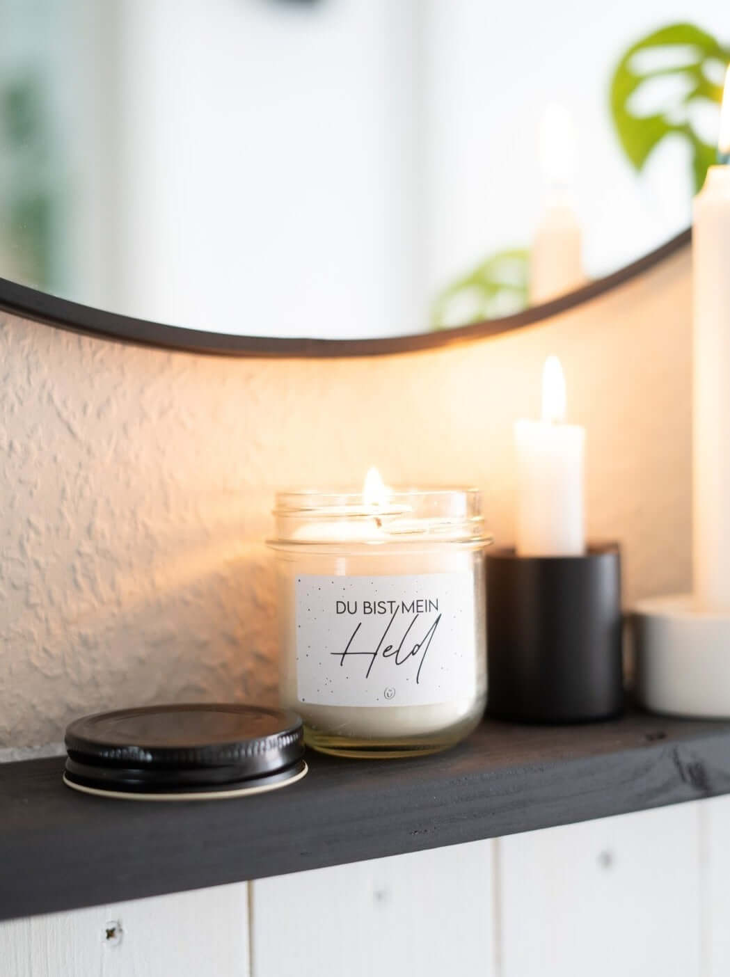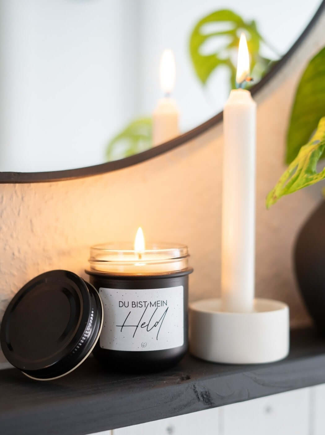 Du willst einem besonderen Mann zeigen, wie viel er dir bedeutet? Dann ist diese vegane Kerze im Glas das perfekte Geschenk. Sie trägt die kraftvolle Botschaft: „Du bist mein Held“ – klar, echt und emotional. Ob für Papa, Partner, Bruder, Freund oder Kollege: Diese handgegossene Kerze ist ein starkes Statement für stille Helden und verlässliche Lieblingsmenschen. Gefertigt in einer Inklusionswerkstatt in Deutschland, aus 100 % pflanzlichem Rapswachs, komplett duftfrei und schadstofffrei. Nachhaltig, fair – und ganz ohne Kitsch.